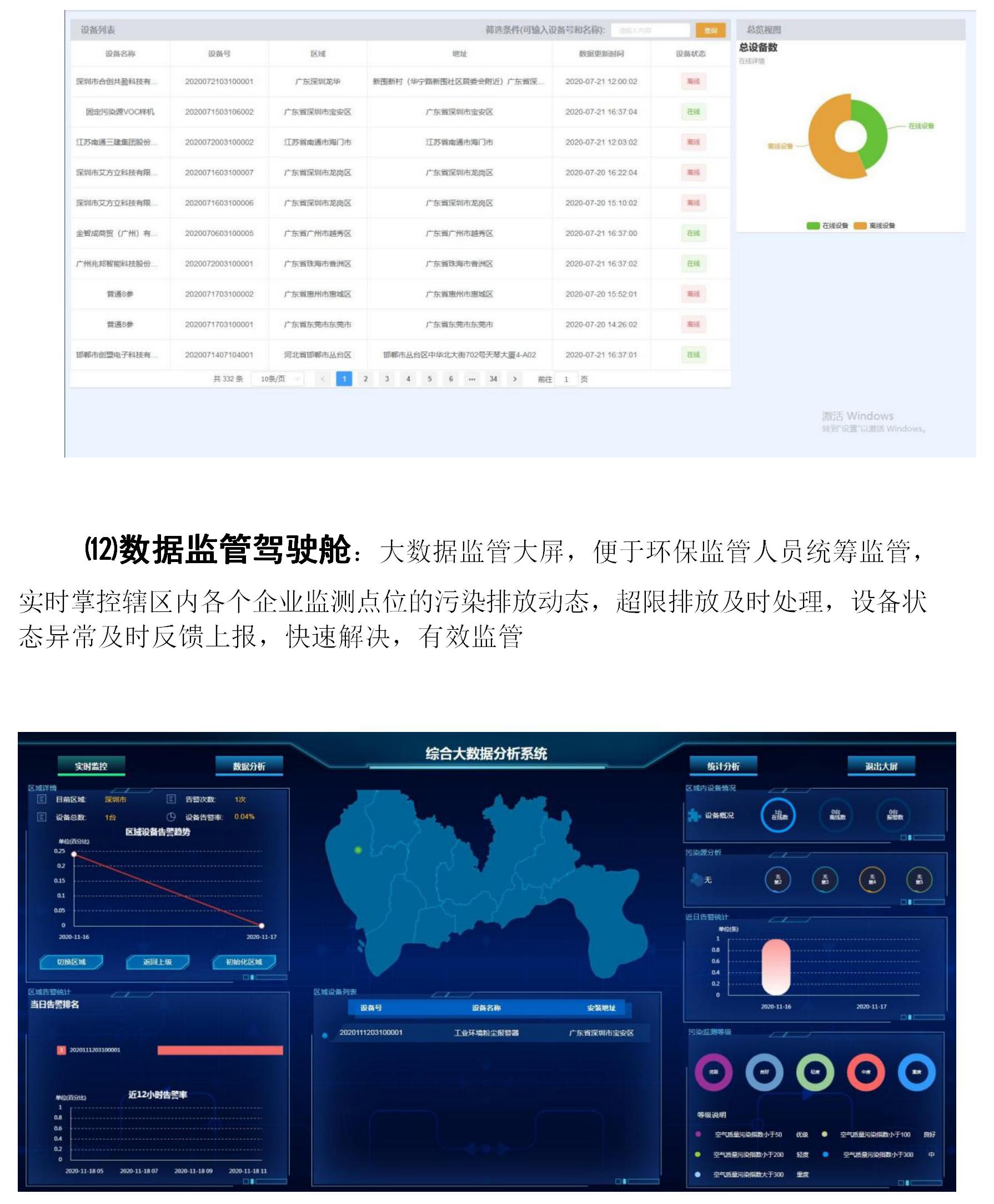 ⑿數(shù)據(jù)監(jiān)管駕駛艙:大數(shù)據(jù)監(jiān)管大屏,便于環(huán)保監(jiān)管人員統(tǒng)籌監(jiān)管,實(shí)時(shí)掌控轄區(qū)內(nèi)各個(gè)企業(yè)監(jiān)測(cè)點(diǎn)位的污染排放動(dòng)態(tài),超限排放及時(shí)處理,設(shè)備狀態(tài)異常及時(shí)反饋上報(bào),快速解決,有效監(jiān)管