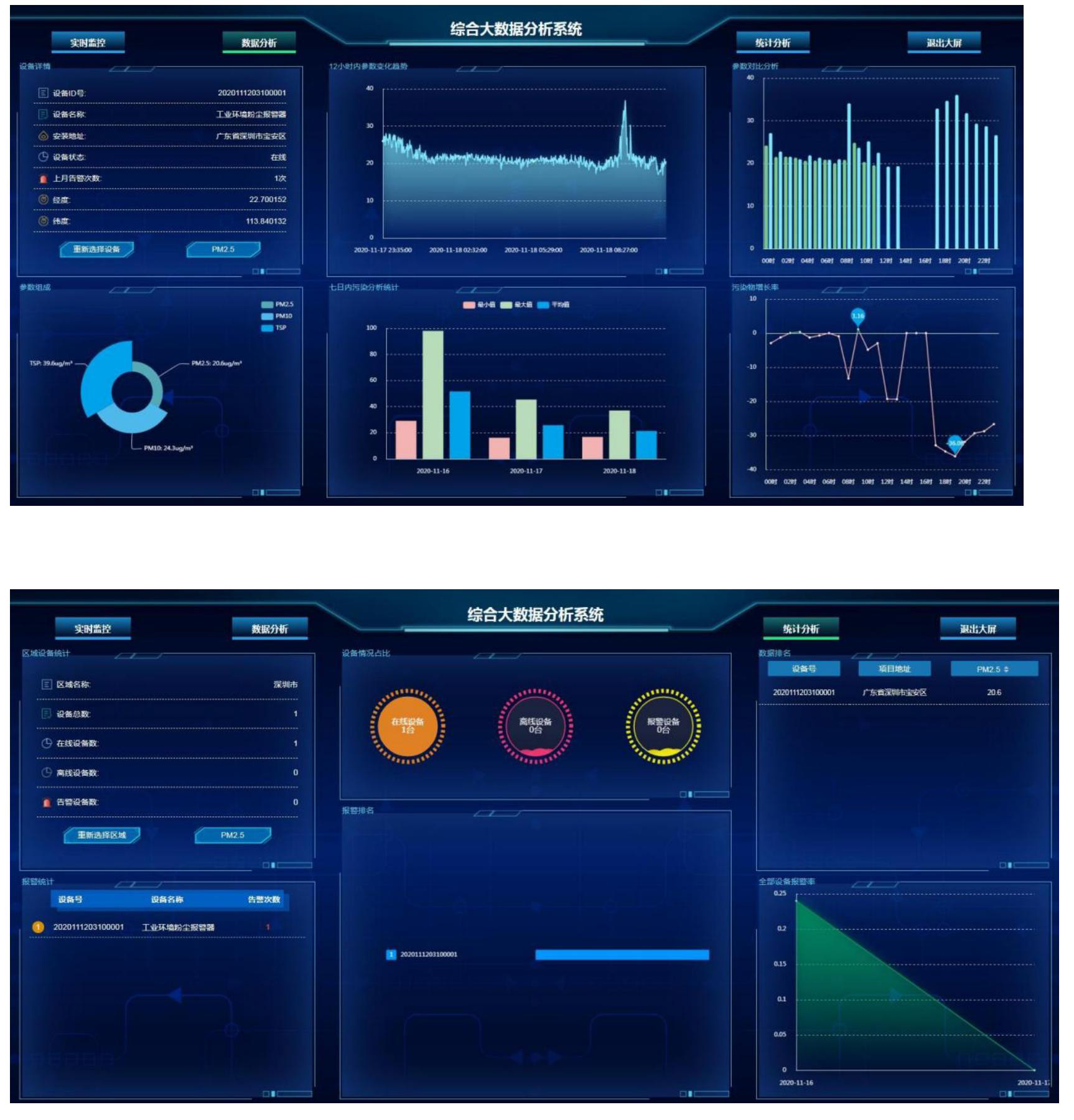 ⑴數(shù)據(jù)中心:?jiǎn)吸c(diǎn)設(shè)備實(shí)時(shí)數(shù)據(jù)查看,國(guó)控?cái)?shù)據(jù)同屏輸出參考,數(shù)據(jù)曲線變化分析,實(shí)時(shí)掌控?cái)?shù)據(jù)動(dòng)態(tài)。